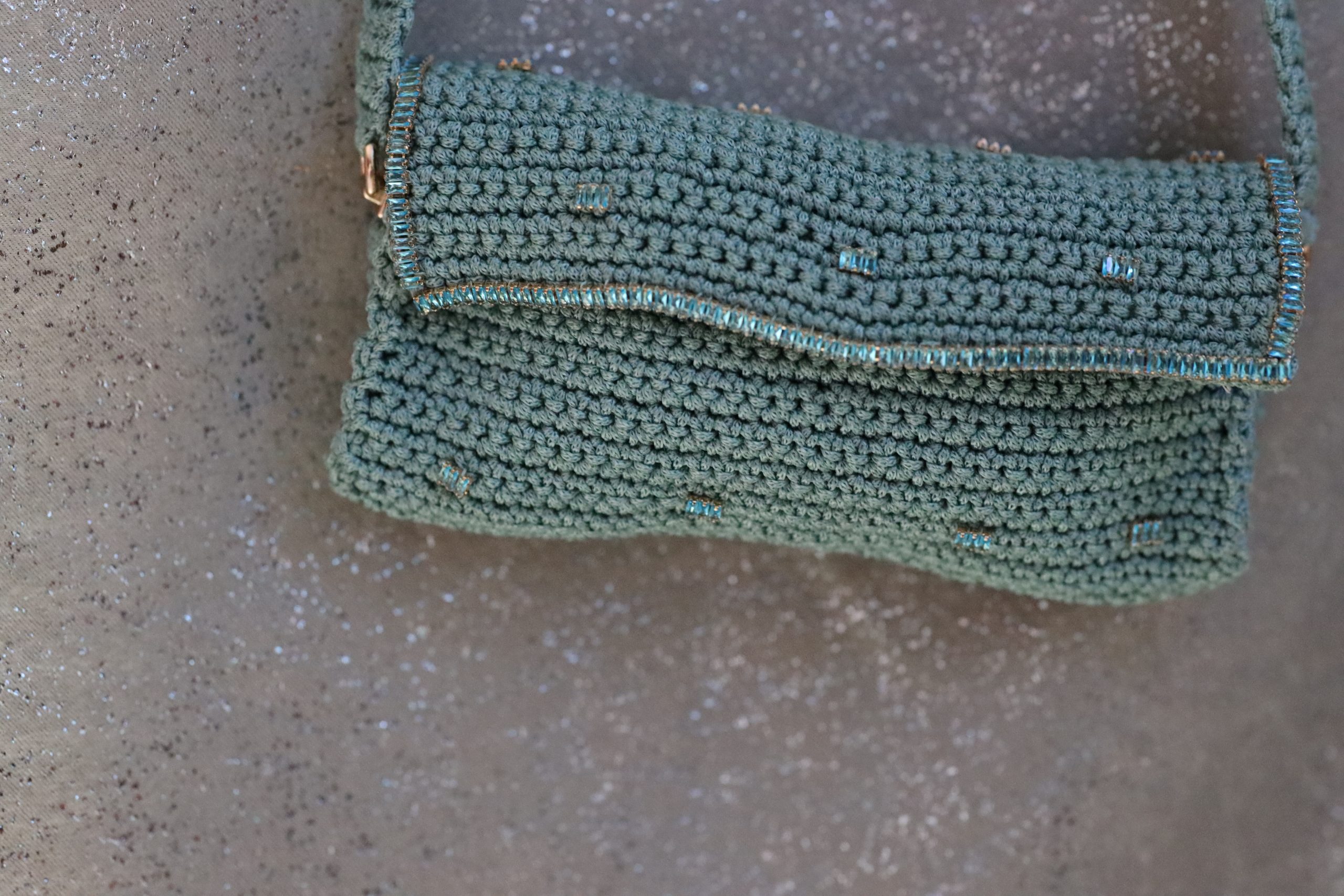 The Northern Glow bag is a delicate creation, meticulously crafted from soft, pale-colored crochet, and adorned with shimmering rhinestones that catch the light beautifully. The subtle elegance of the crochet work is perfectly complemented by the sparkle of the rhinestones, creating a bag that exudes sophistication and charm. Ideal for both day and evening wear, this bag adds a touch of luminous grace to any outfit, making it a versatile accessory for special occasions or everyday luxury.